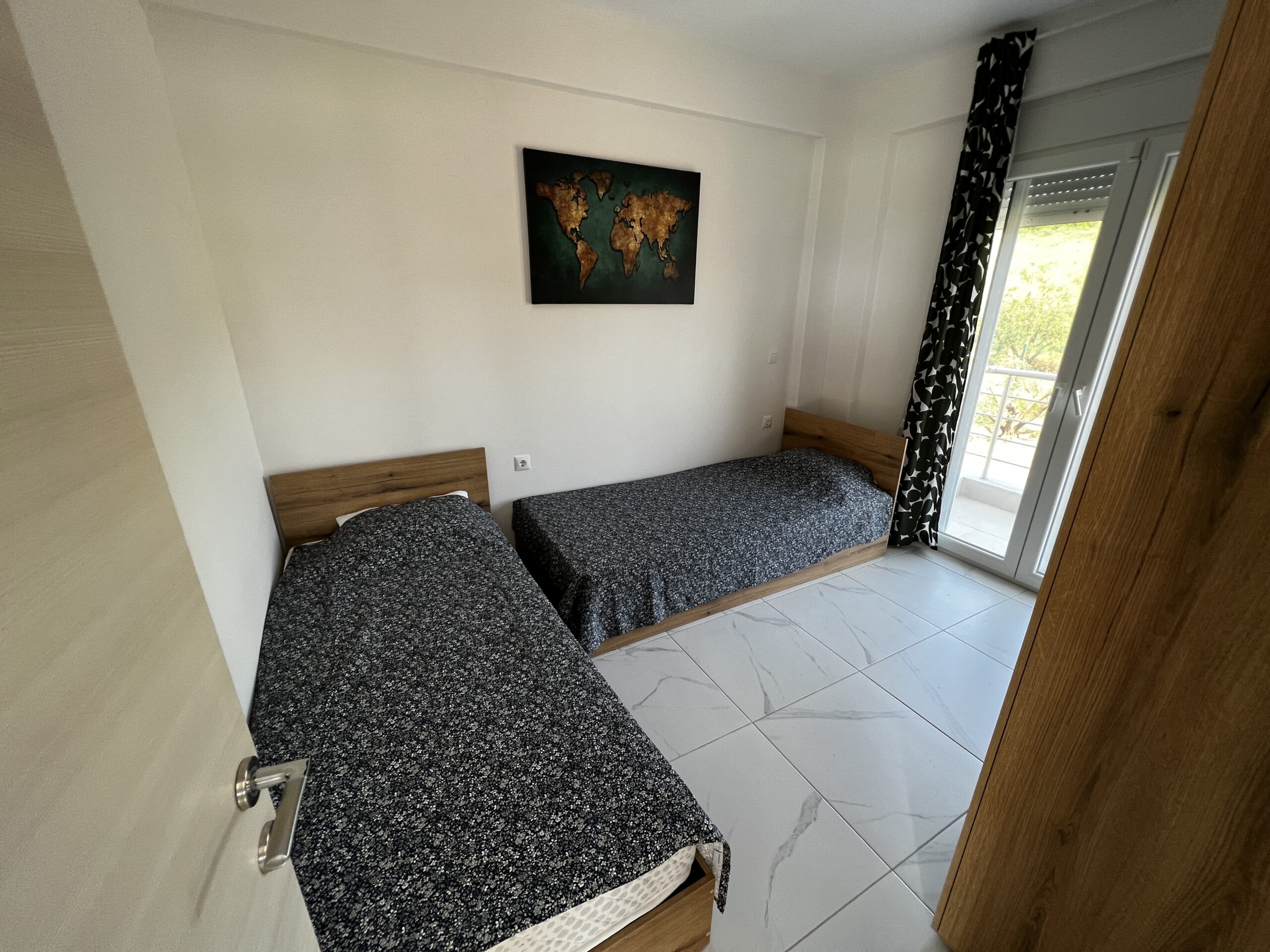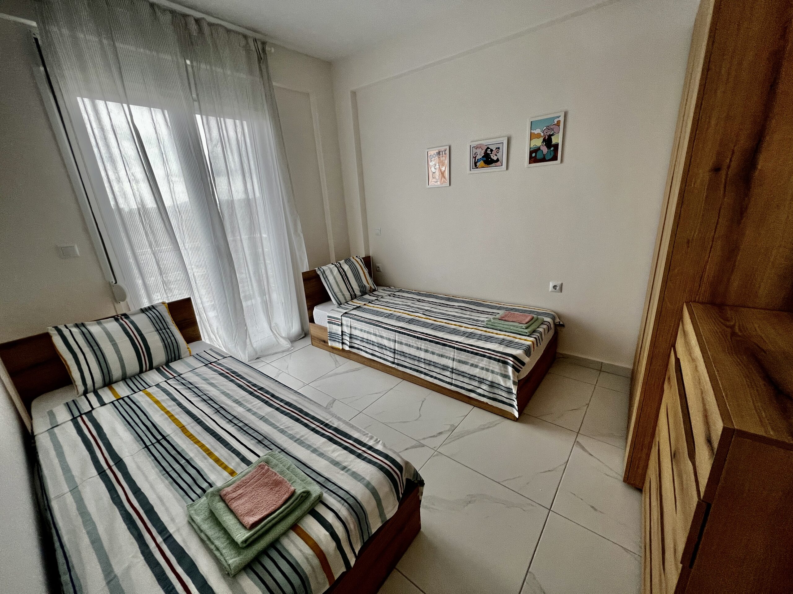 One double bed and two single beds